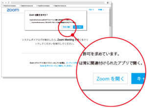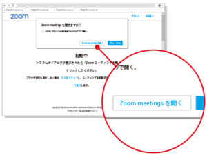 ダイアログ「Zoom Meetings を開く」をクリックします。