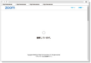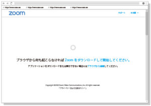 ウェブブラウザが起動し、Zoomの公式ページが開きます。