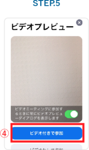 「ビデオ付きで参加」をタップ